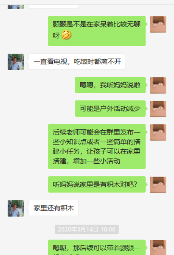 平時(shí)孩子的學(xué)習(xí)都是師醫(yī)生與童程童美的老師聯(lián)系,疫情期間,孩子不能到校區(qū)上課,師醫(yī)生又在一線,所以每次都是童程童美的老師與師醫(yī)生聯(lián)系后,將課程視頻發(fā)到姥爺?shù)氖謾C(jī)上,讓孩子在家跟著視頻學(xué)習(xí)。