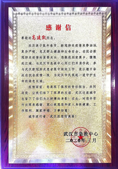致援鄂英雄的感謝信及紀(jì)念(榮譽(yù))證書