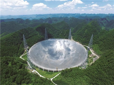 500米口徑球面射電望遠(yuǎn)鏡(Five-hundred-meter Aperture Spherical Telescope),簡稱FAST。是由中國科學(xué)院國家天文臺(tái)主導(dǎo)建設(shè),具有我國自主知識(shí)產(chǎn)權(quán)、世界最大單口徑、最靈敏的射電望遠(yuǎn)鏡。綜合性能是著名的射電望遠(yuǎn)鏡阿雷西博的十倍。