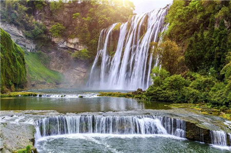 參觀黃果樹瀑布,感受自然的神奇力量,并結(jié)合課程手冊(cè)和參觀黃果樹瀑布的地理環(huán)境等的分小組討論黃果樹瀑布形成的原因和條件。了解瀑布雄、奇、險(xiǎn)、秀等風(fēng)格。