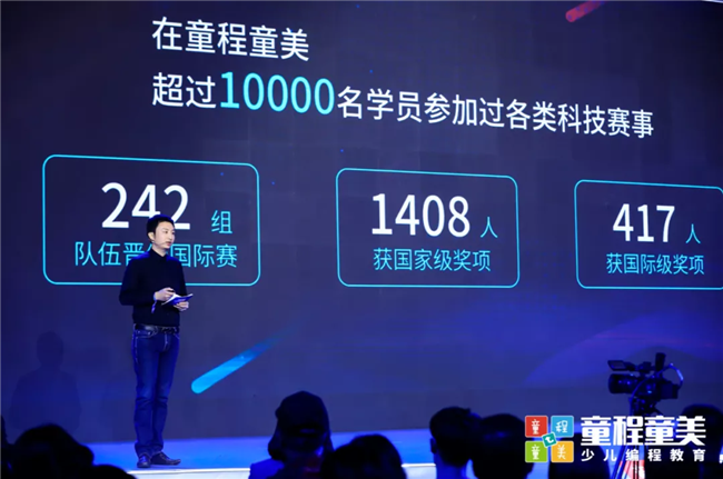 迄今,童程童美已有超過10000名學(xué)員參加過各類科技賽事,242組隊(duì)伍晉級(jí)國際賽,1408人獲得國家級(jí)獎(jiǎng)項(xiàng),417人獲得國際級(jí)獎(jiǎng)項(xiàng)。潘公博強(qiáng)調(diào)學(xué)員通過這些賽事項(xiàng)目可以充分鍛煉能力和享受成果,全面塑造孩子的綜合素質(zhì)。