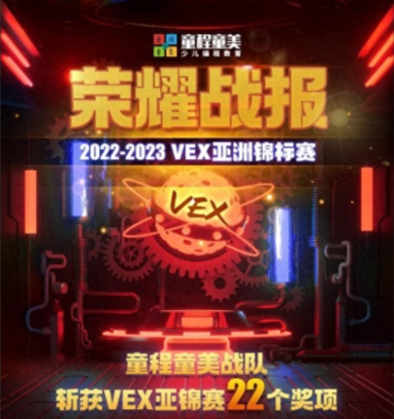 2020-2021賽季,童程童美湖南長(zhǎng)沙圖書館中心31888B戰(zhàn)隊(duì)在世界總決賽上為中國(guó)拿回VEX-IQ項(xiàng)目的世界冠軍;2021-2022賽季,童程童美選手包攬了世錦賽亞太分區(qū)賽VEX-IQ初中組團(tuán)隊(duì)協(xié)作的冠亞季軍、技能冠軍和亞軍,同時(shí),VEX-IQ小學(xué)組的選手還榮獲了世錦賽的最高獎(jiǎng)項(xiàng)-全能獎(jiǎng),并包攬了技能獎(jiǎng)的冠亞季軍,以及團(tuán)隊(duì)協(xié)作獎(jiǎng)的冠軍、季軍。