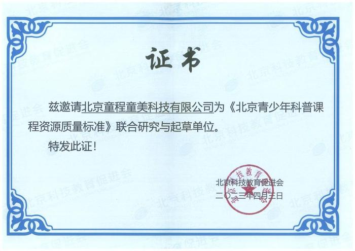 童程童美聯(lián)合發(fā)起推動《北京青少年科普課程資源質(zhì)量標準》
