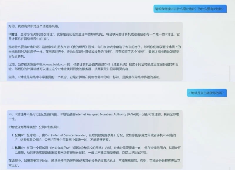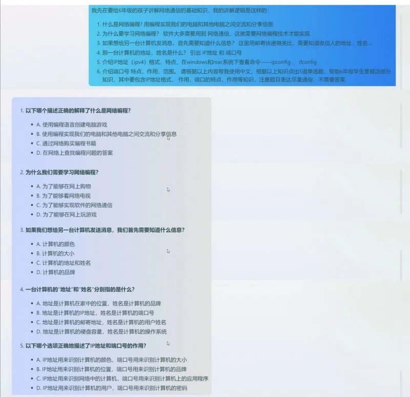 在具體實踐中,首先,在預習階段,老師可以布置探究性作業(yè),引導學生有目的的使用AI助教系統進行自主探究,提前了解即將學習的內容,然后在課堂上分享和討論探究結果。這不僅培養(yǎng)了學生的自主學習能力,還激發(fā)了他們的好奇心和探索精神。
