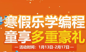 寒假不僅僅是用來放松的,更是給孩子一個(gè)查缺補(bǔ)漏的機(jī)會!童程童美攜多重福利重磅來襲!寒假樂學(xué)編程,童享多重豪禮!活動時(shí)間:1月13日~2月17日,活動時(shí)間有限,速來領(lǐng)取吧~