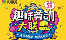 童程童美“趣味勞動大聯(lián)盟”熱門上線,五一小長假,趣味編程大作戰(zhàn)等你來挑戰(zhàn)!活動時間4月30日~5月4日,趕快報名吧!和小伙伴一起開啟趣味勞動聯(lián)盟大作戰(zhàn)!