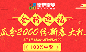參加童程童美春節(jié)迎福抽獎(jiǎng)活動(dòng),開(kāi)開(kāi)心心玩游戲,輕輕松松抽大獎(jiǎng)!一起瓜分2000份新春大禮!100%中獎(jiǎng)哦!