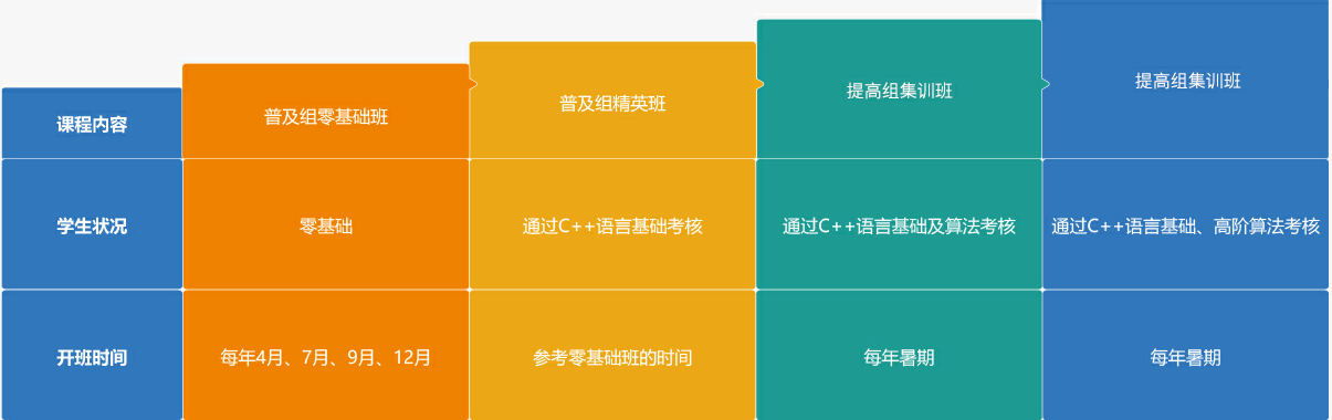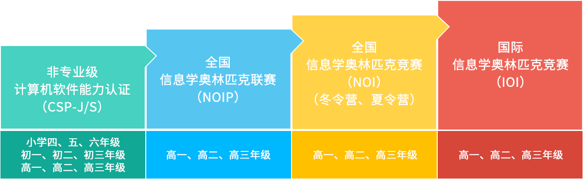 信息學(xué)奧賽(全國青少年信息學(xué)奧林匹克聯(lián)賽(NOIP))的訓(xùn)練輔導(dǎo),是面向小學(xué)四年級(jí)及以上的中小學(xué)生,主要使用C++語言培訓(xùn)。學(xué)員可參加等級(jí)測評(píng)。